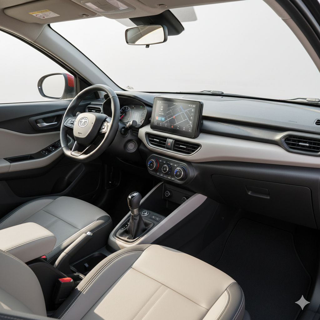 Inside the cabin, the Tata Punch offers a well-designed and spacious interior for its segment. The dashboard has a modern layout with a 7-inch touchscreen infotainment system that supports Android Auto and Apple CarPlay. The seats are comfortable, and the upright driving position provides excellent visibility.
