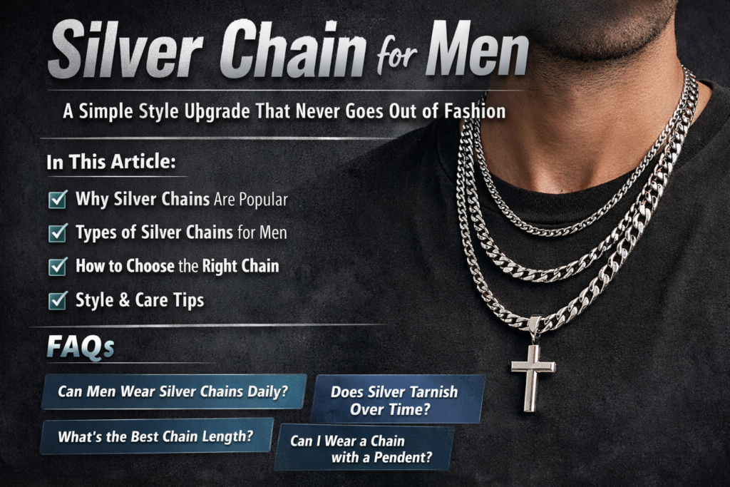A silver chain for men is a simple yet powerful accessory that adds charm to any outfit. Whether you prefer minimal fashion or bold statements, there is a silver chain for everyone. With the right style, length, and care, your silver chain can become a part of your everyday identity.